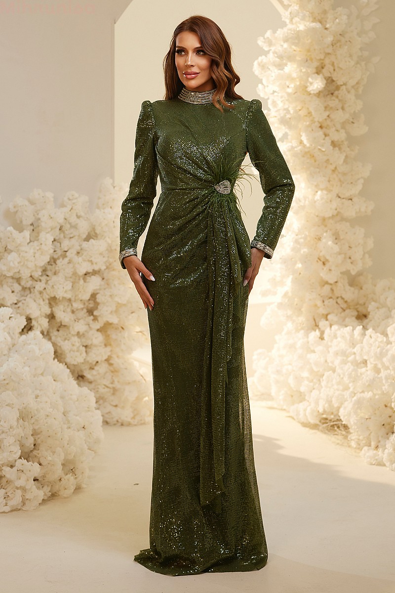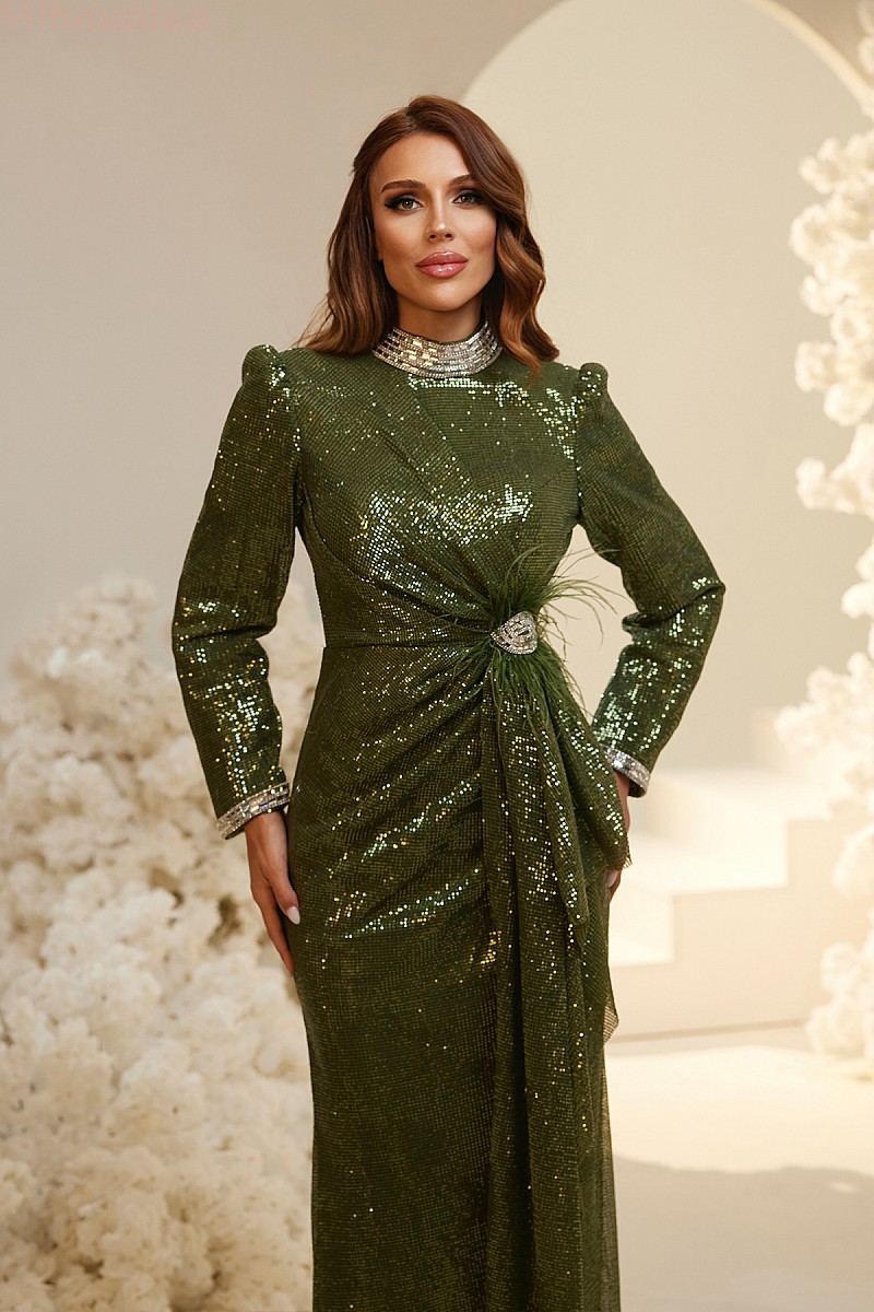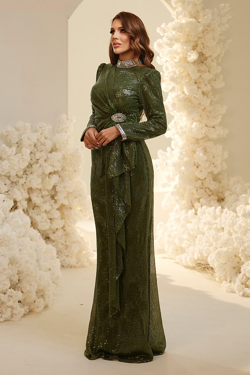 Beli Broş Detaylı Drapeli Şık Rua Abiye - Haki