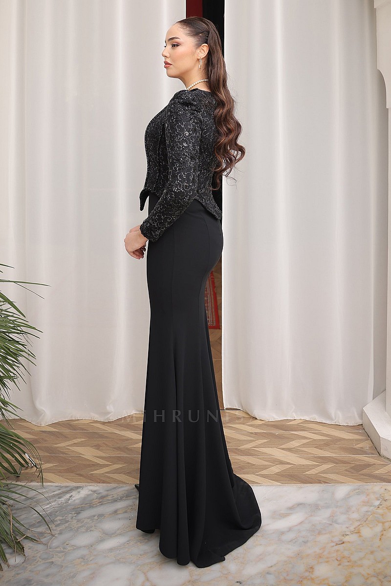 Dantel Detaylı Balık Kesim Tanya Abiye - Siyah