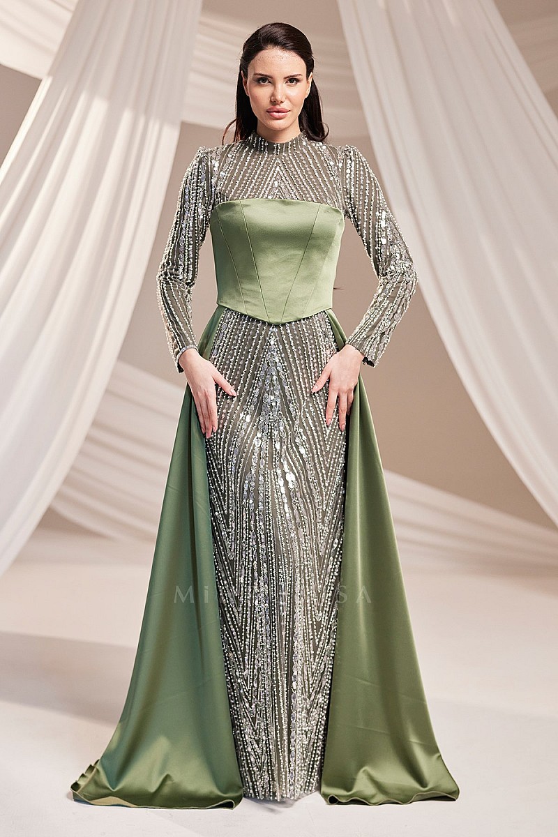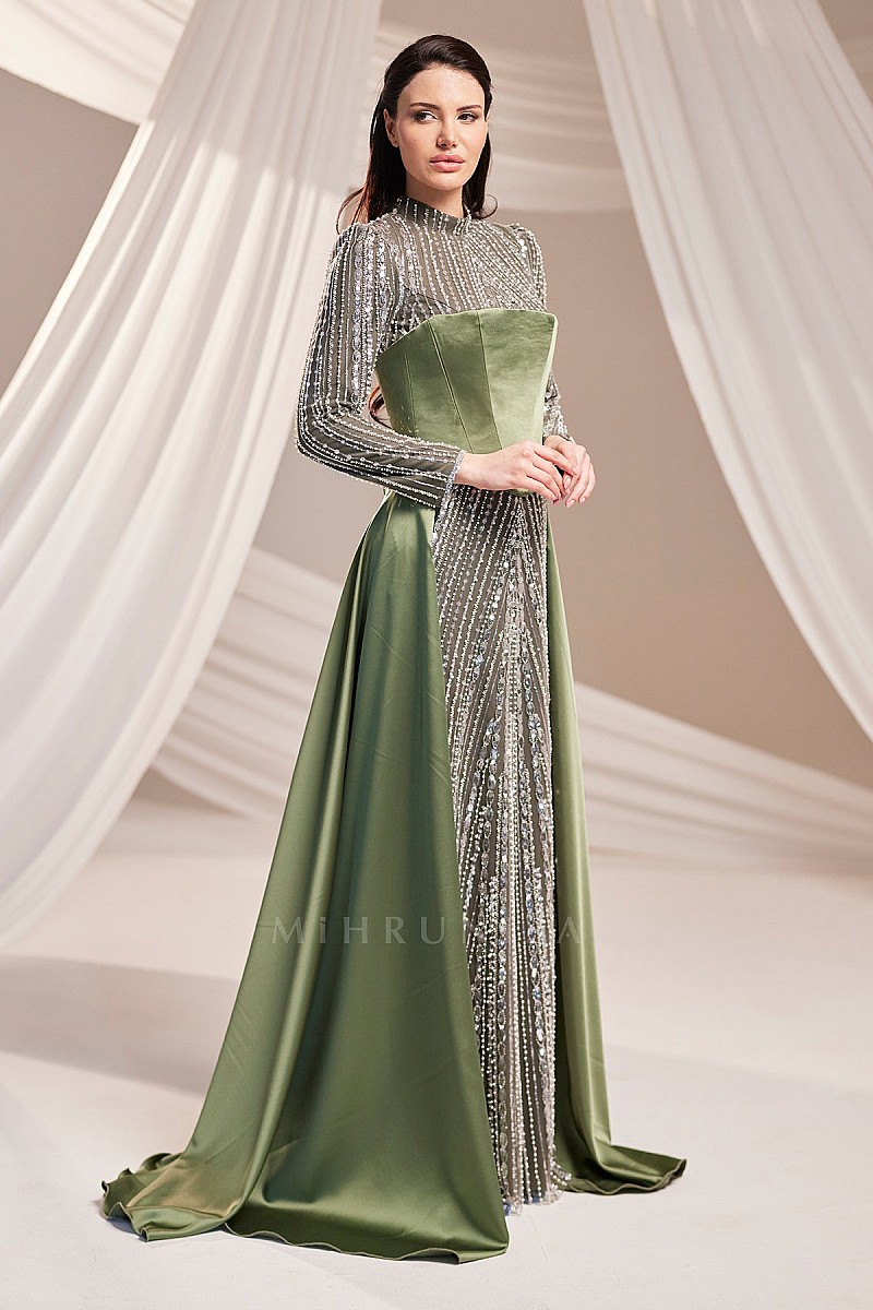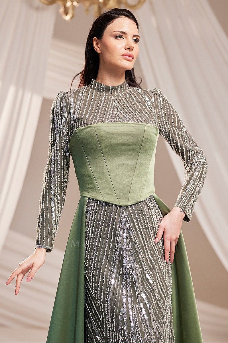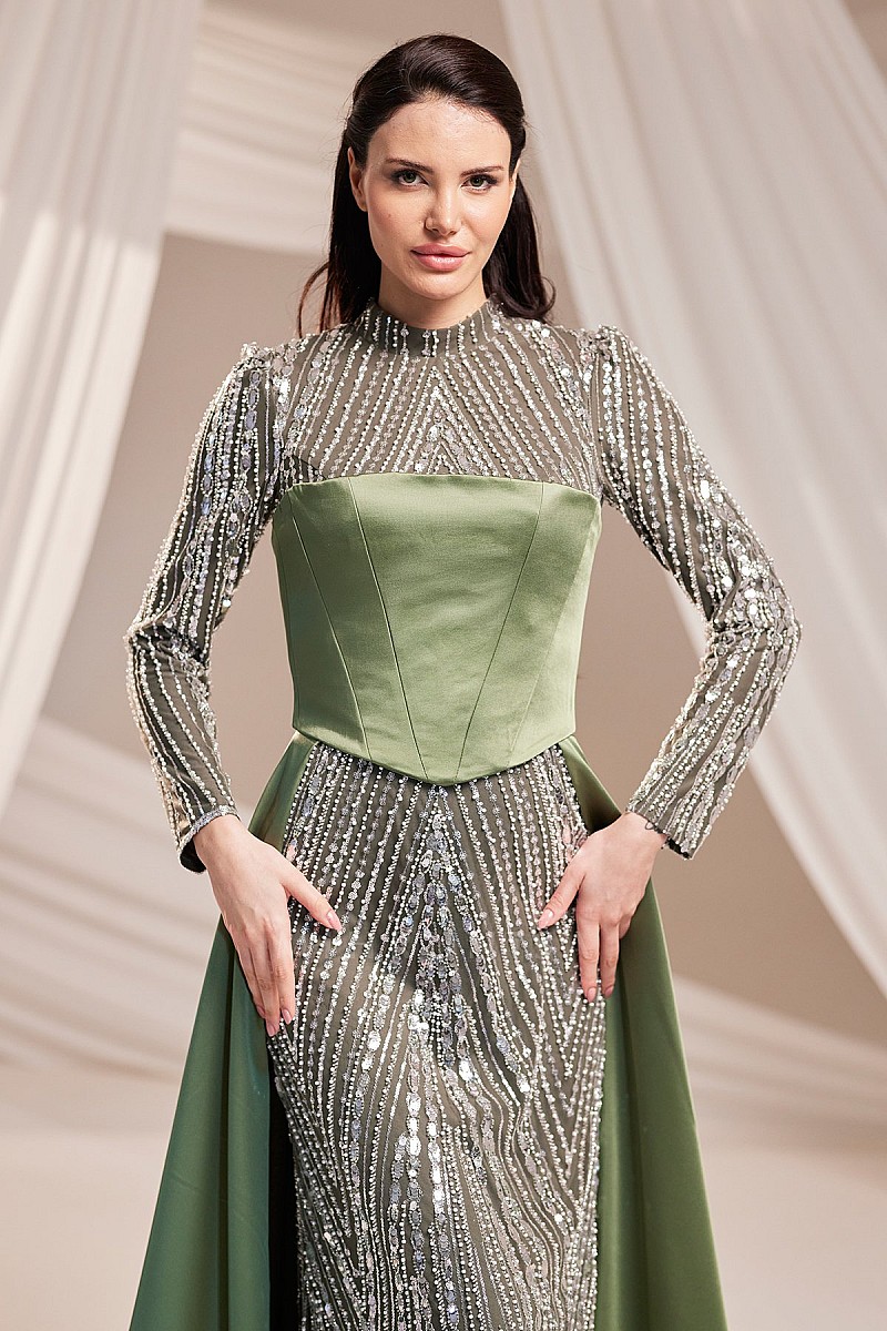 Korse Detaylı Işıltılı Asude Abiye - Haki