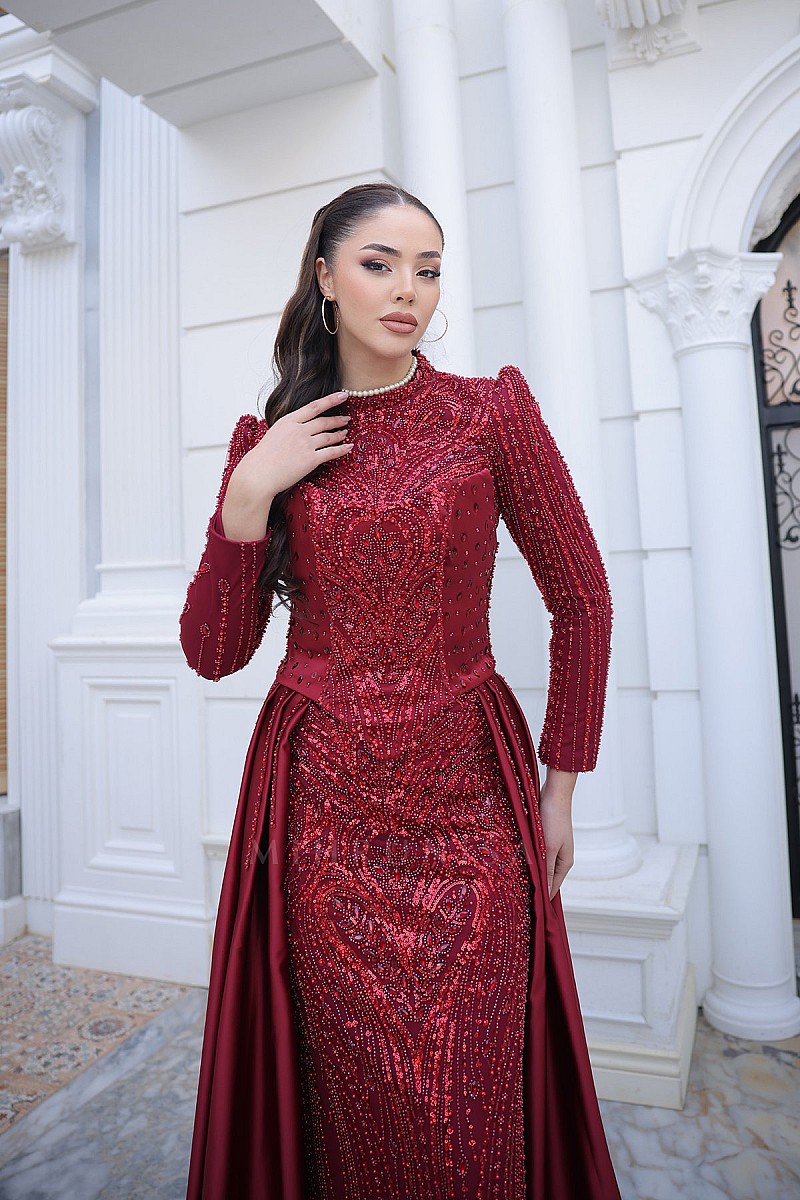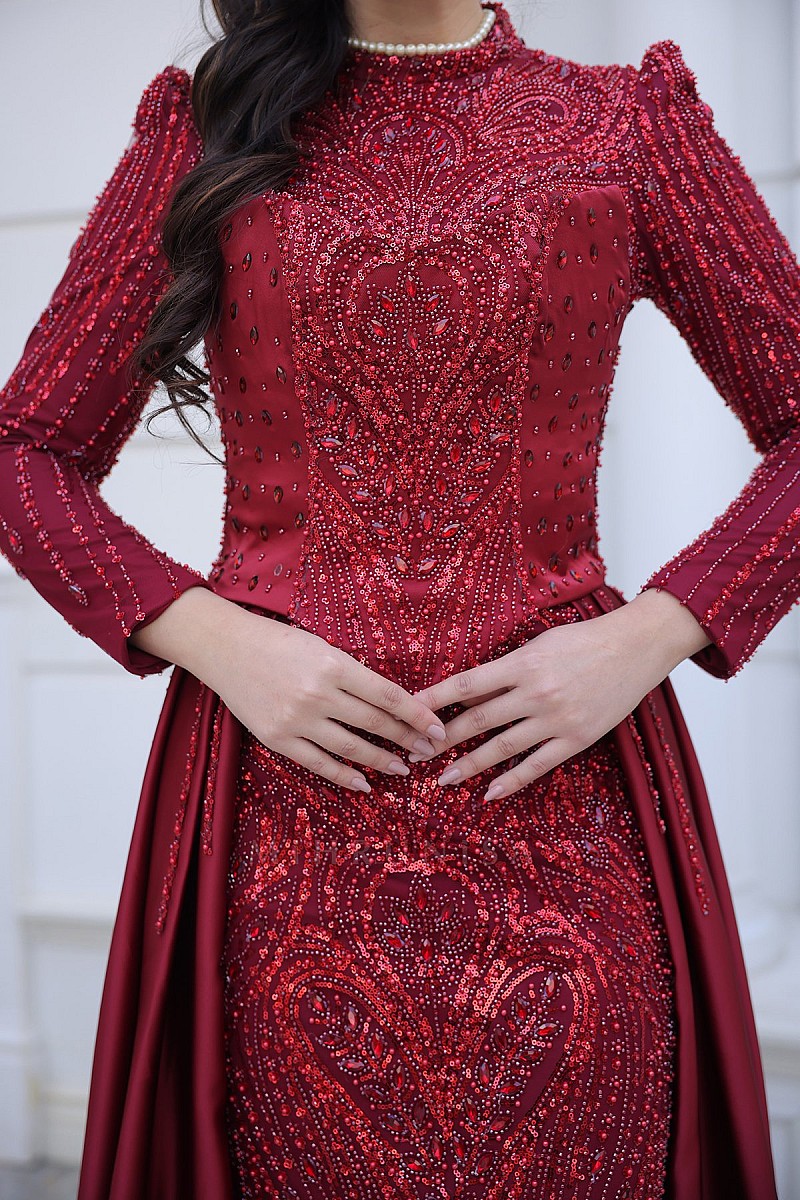 Portatif Korse Detay Taş İşlemeli Mirella Abiye - Bordo