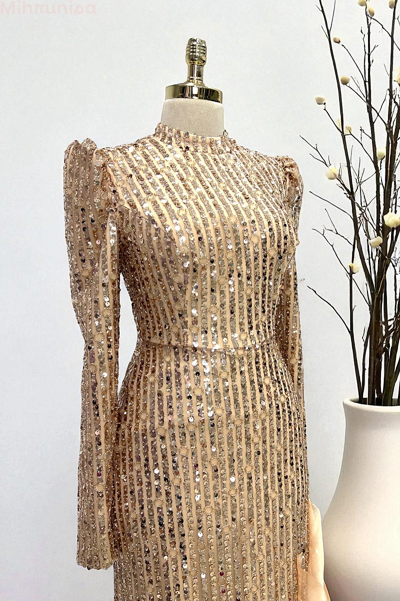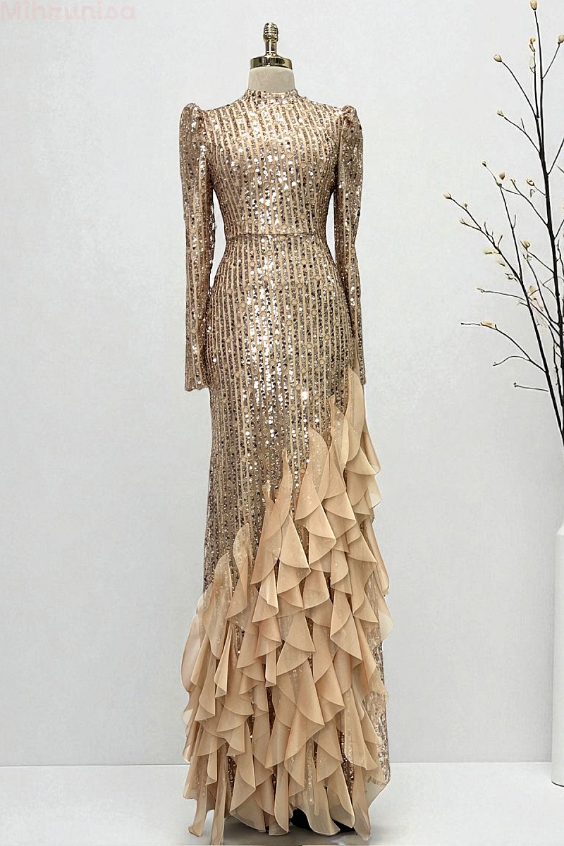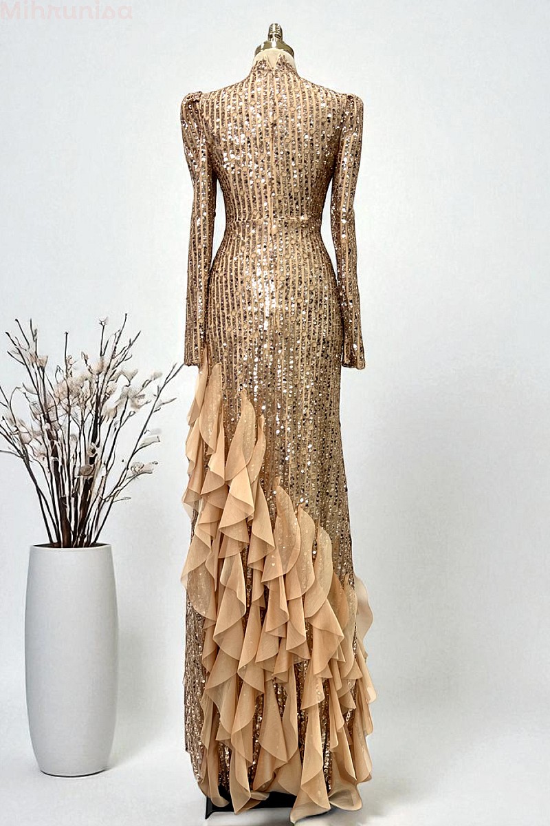 Volan Etekli Işıltılı Rosie Abiye - Gold