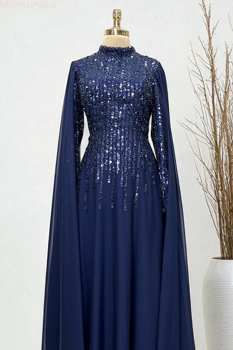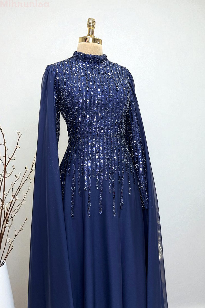 Kolları Şifon Pelerin Detay Martha Abiye - Lacivert