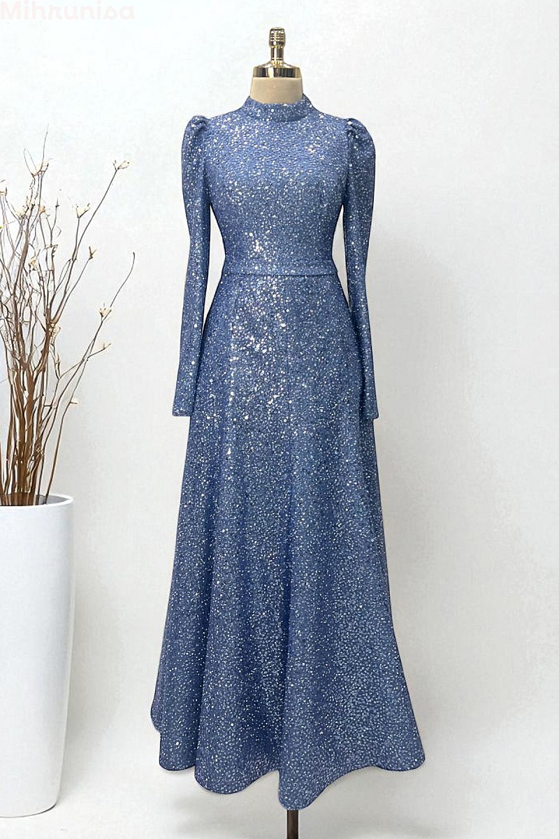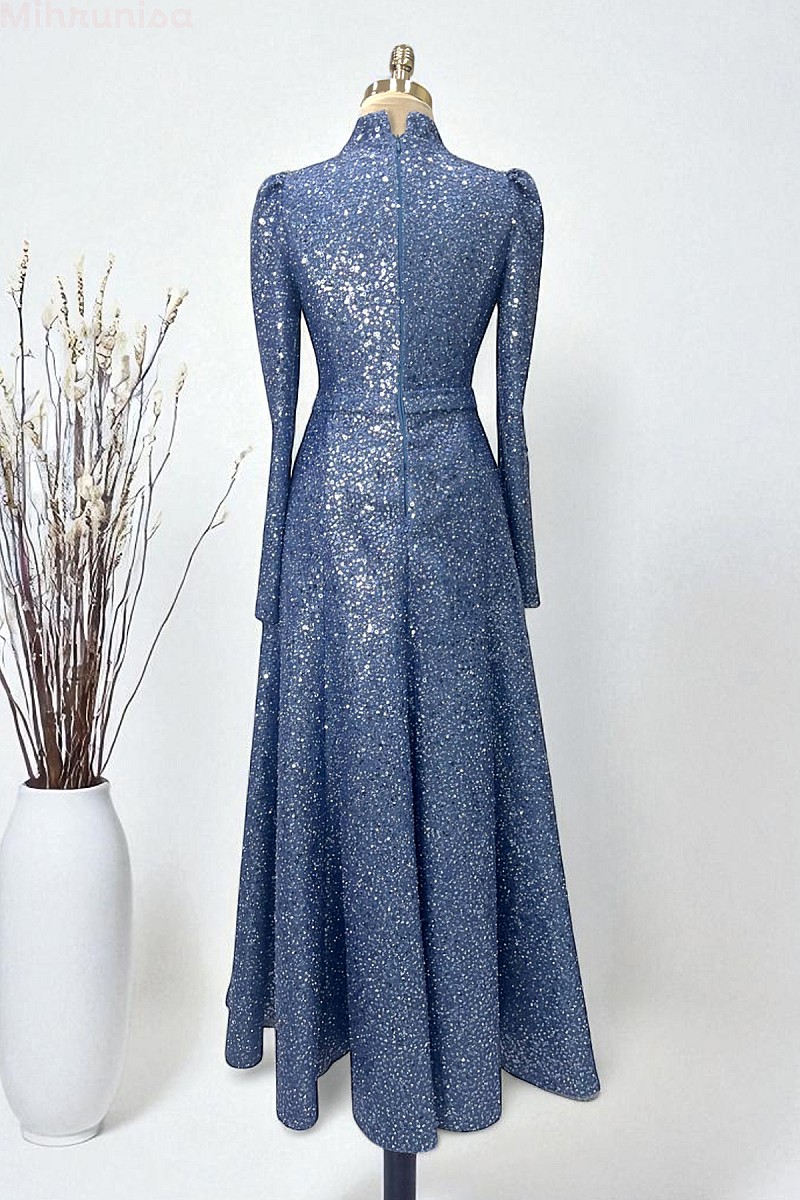 Payetli Midi Boy Alara Abiye - İndigo