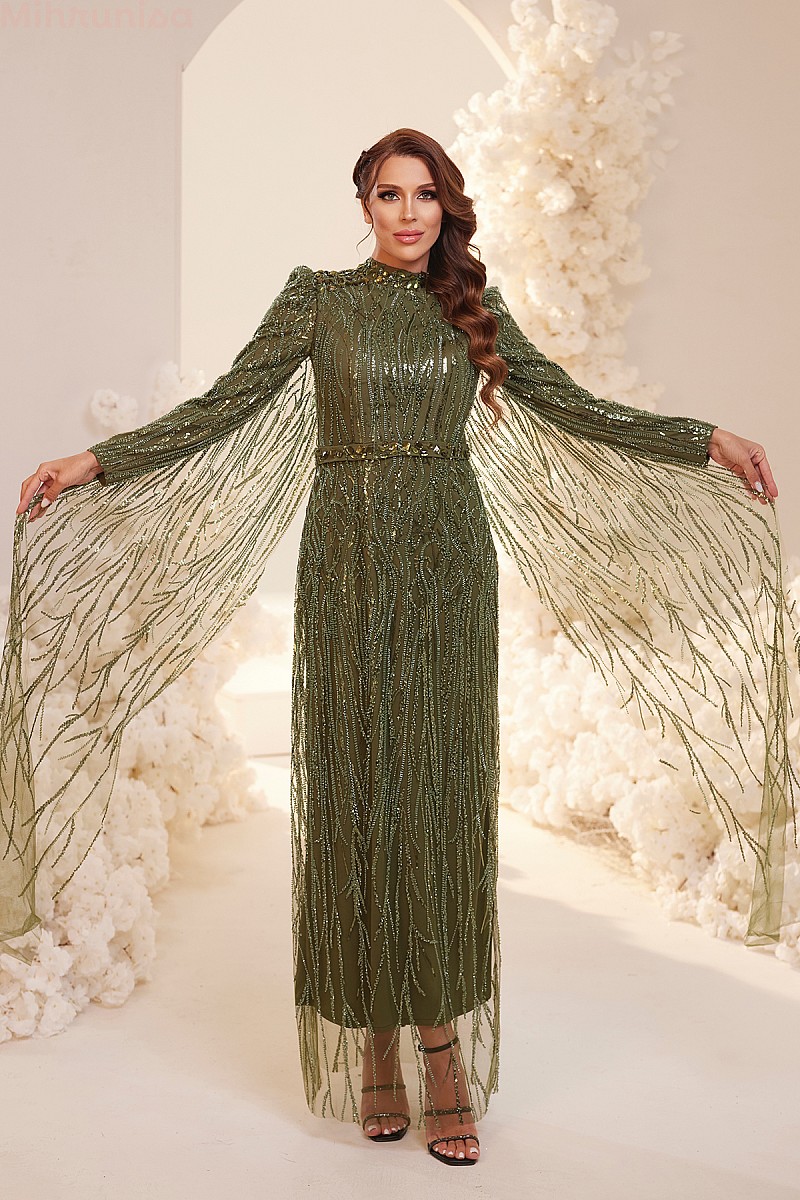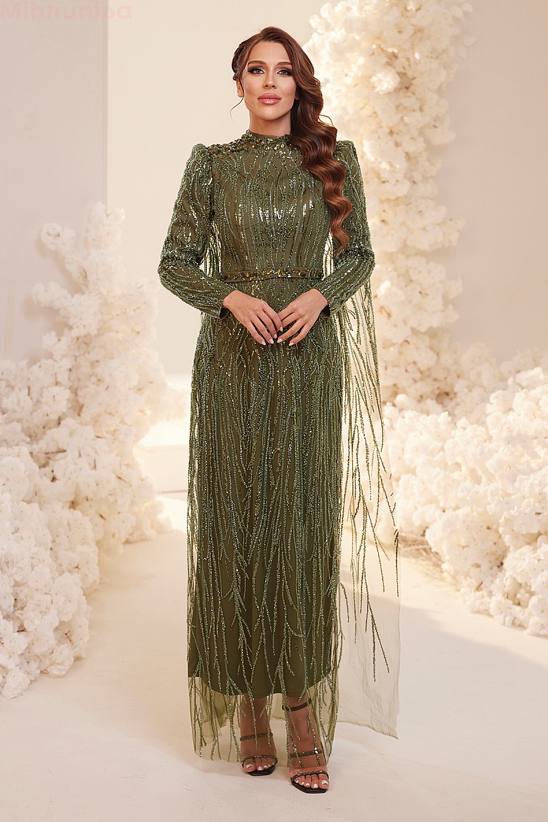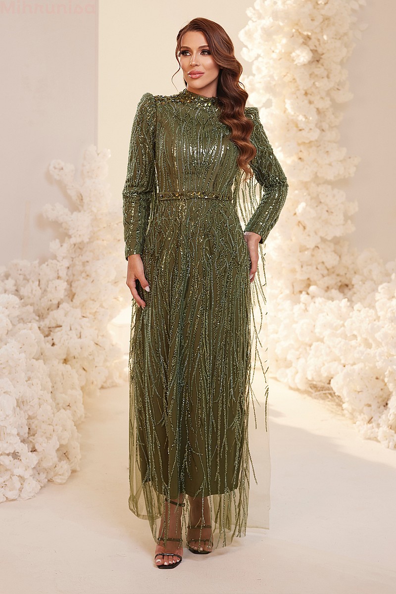 Saçak Dantel İşlemeli Modern Melya Abiye - Haki