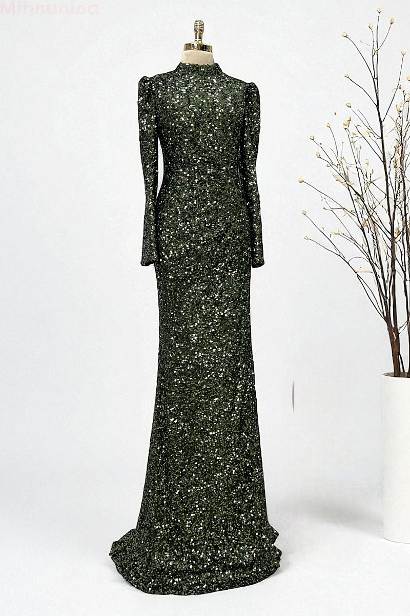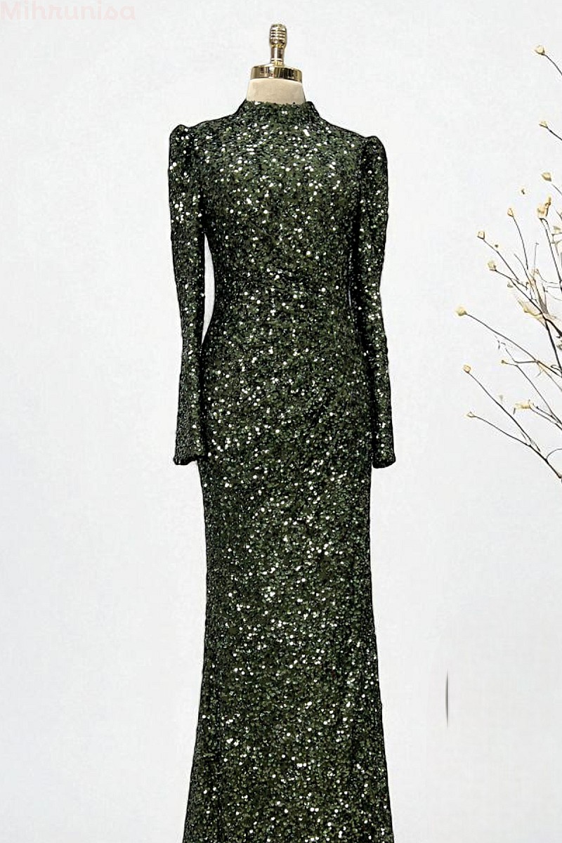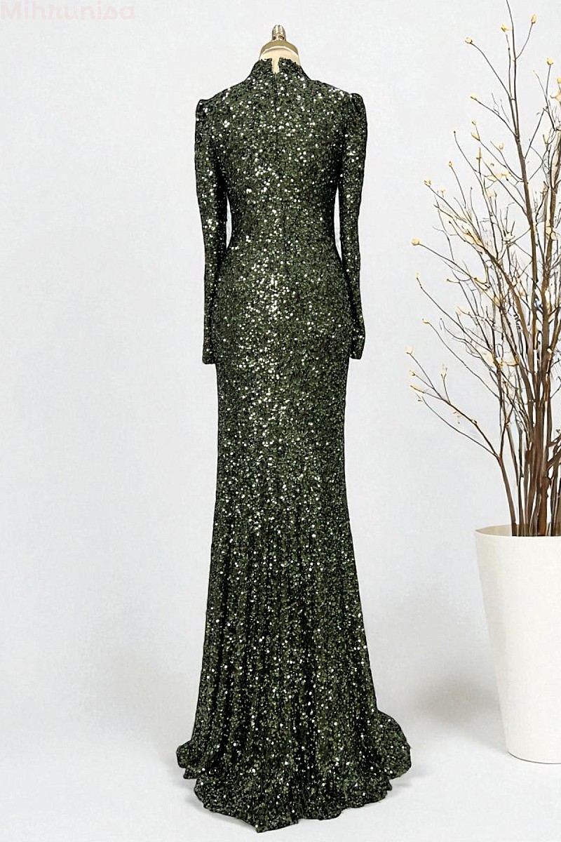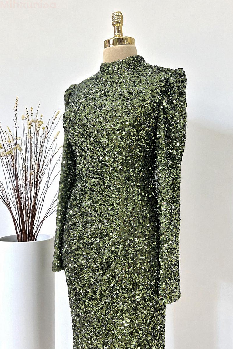 Tam Boy Payetli Zarif Kesim Colina Abiye - Haki