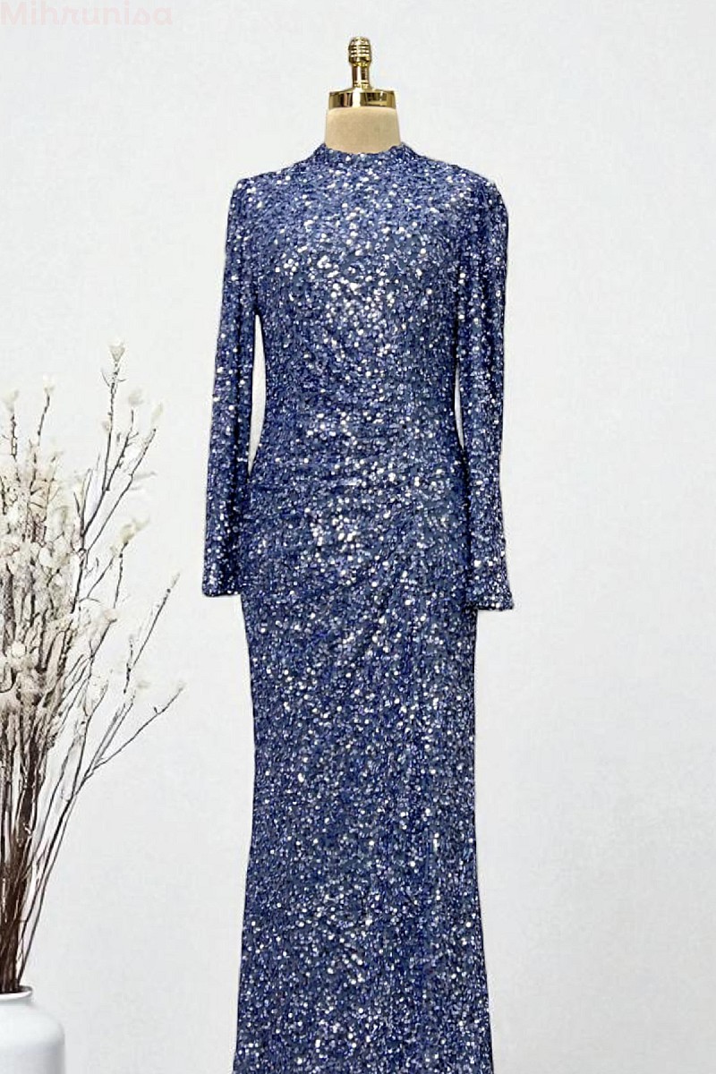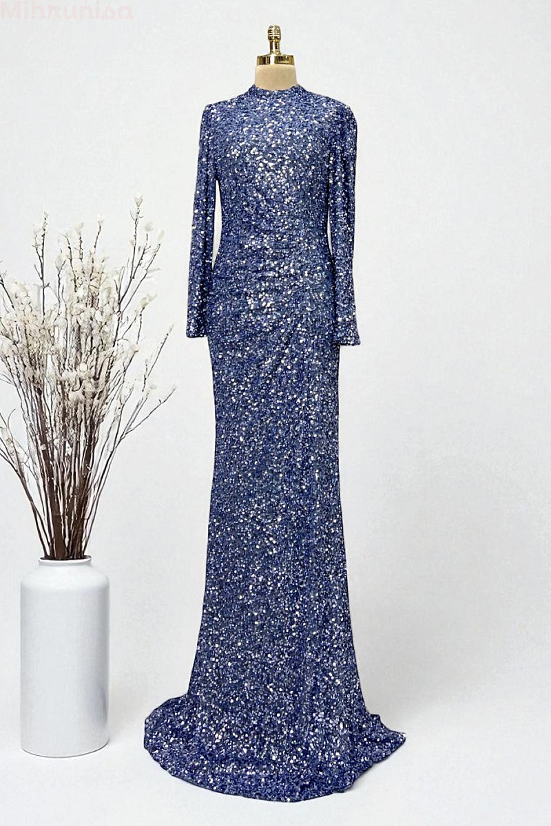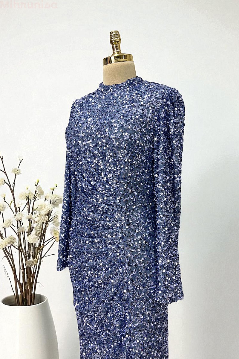 Tam Boy Payetli Zarif Kesim Colina Abiye - İndigo