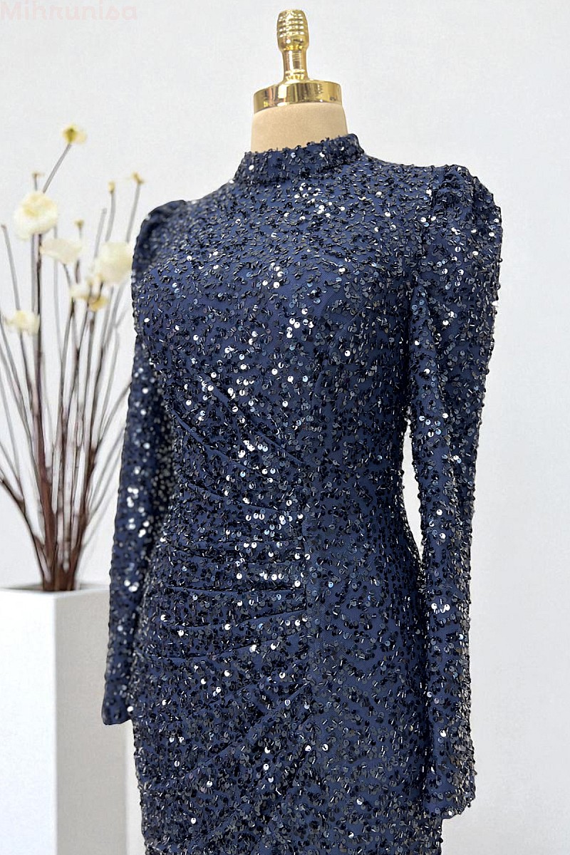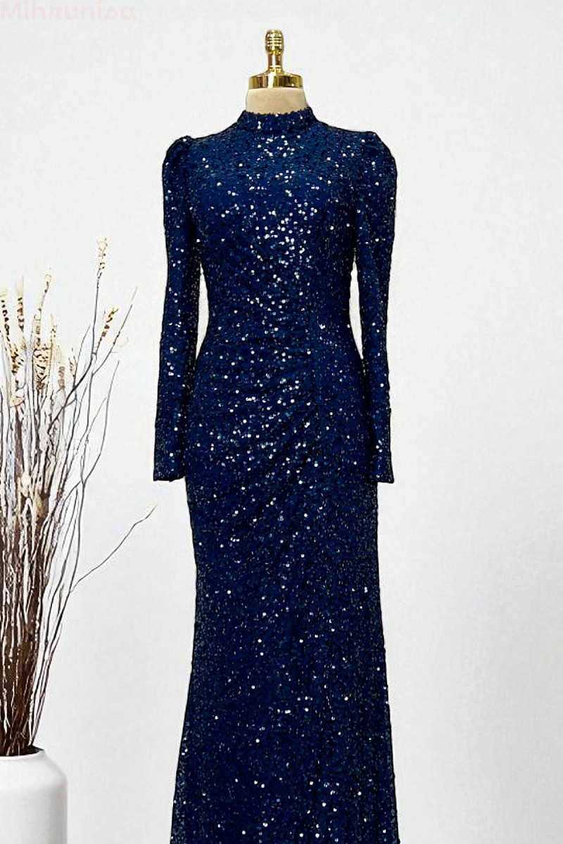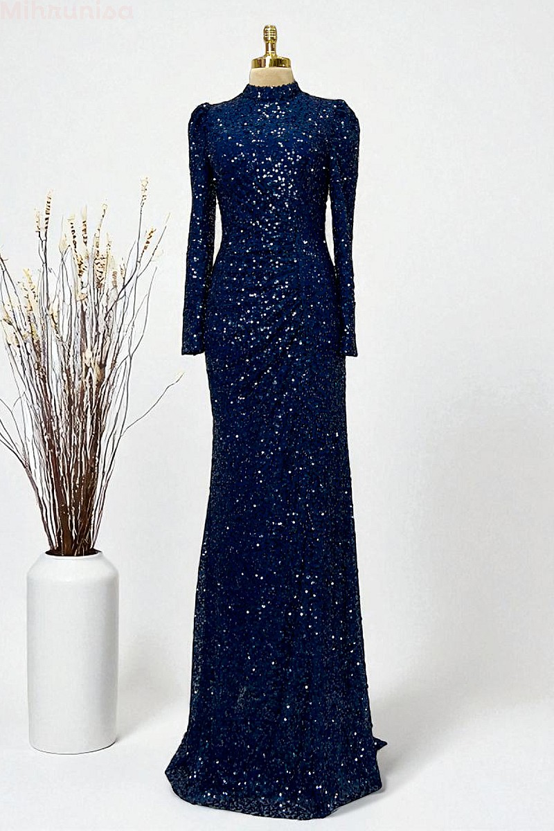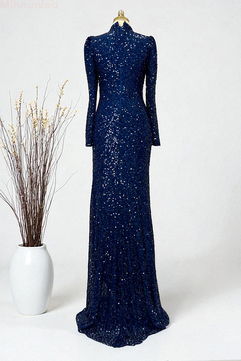 Tam Boy Payetli Zarif Kesim Colina Abiye - Lacivert