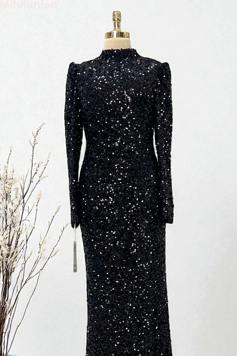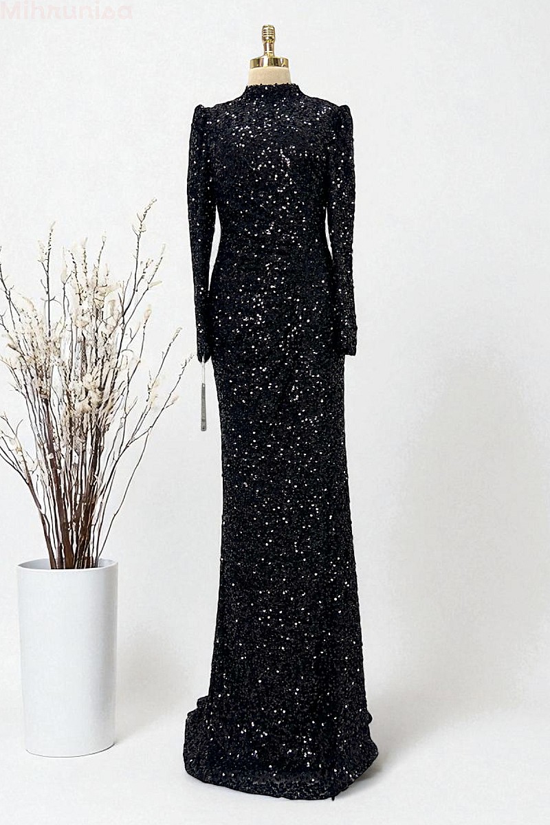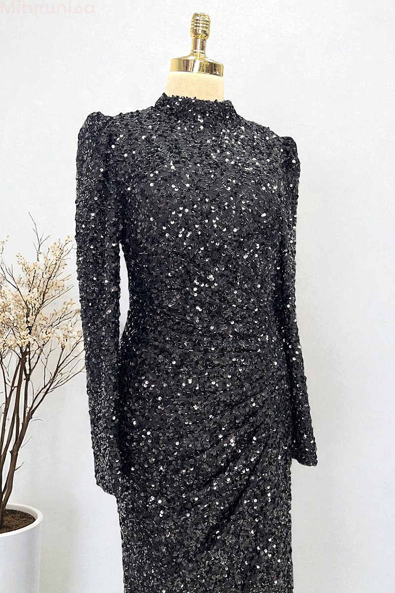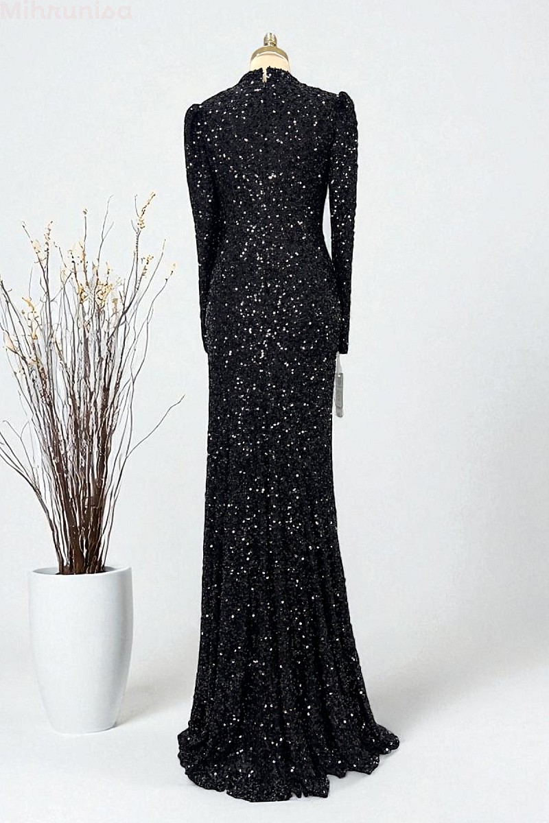 Tam Boy Payetli Zarif Kesim Colina Abiye - Siyah