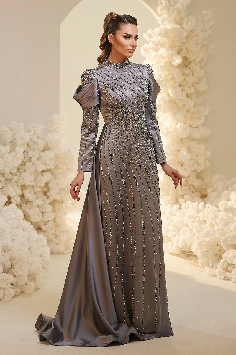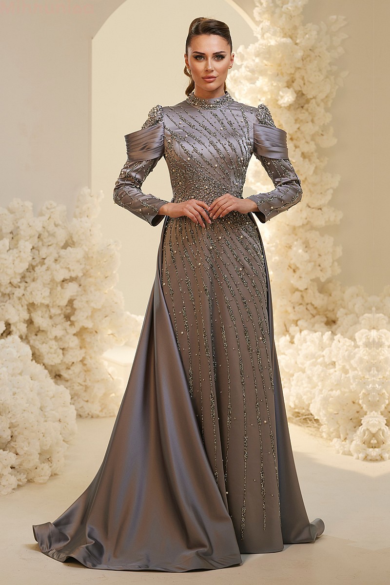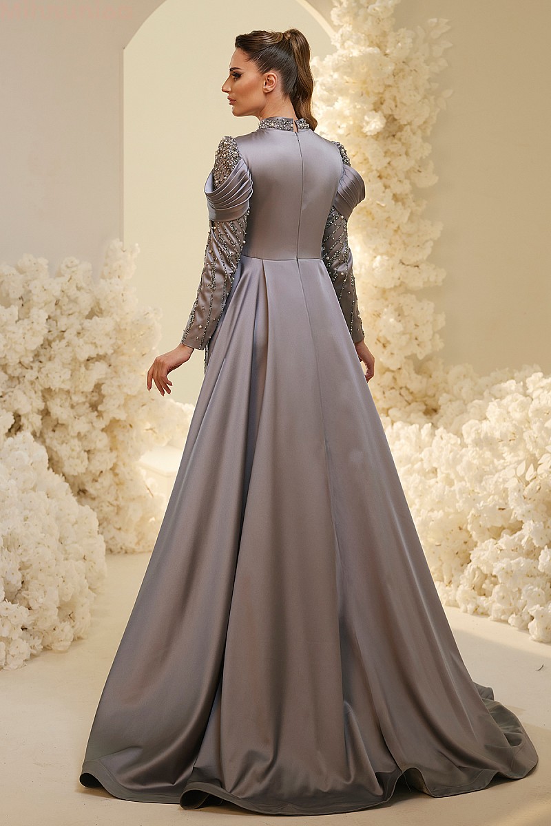 Katman Kol Detaylı İşlemeli Mira Abiye - Gri