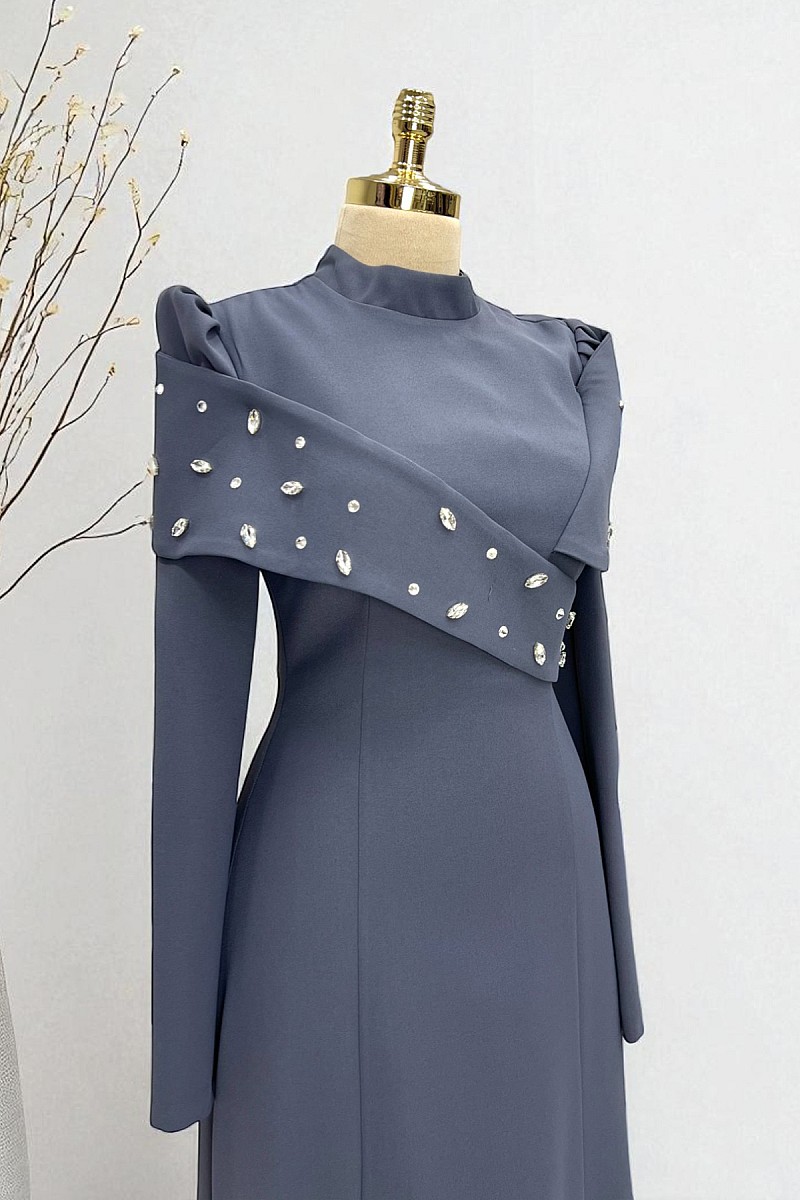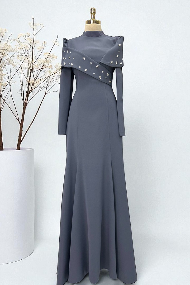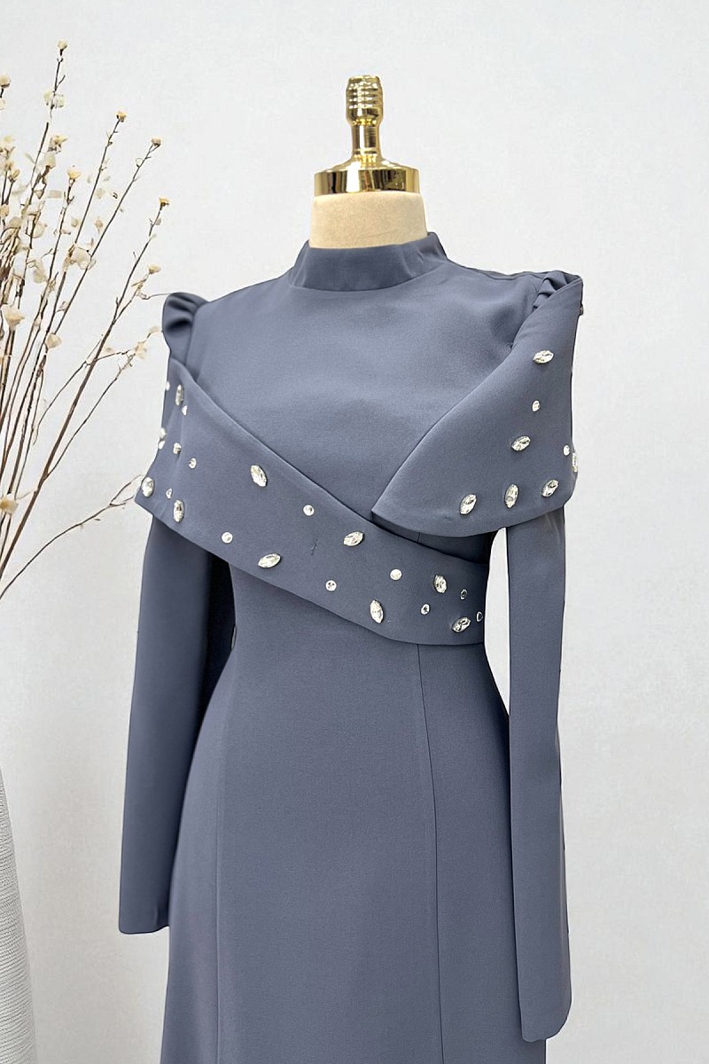 Taş Çakma Detaylı Bronte Abiye - Antrasit
