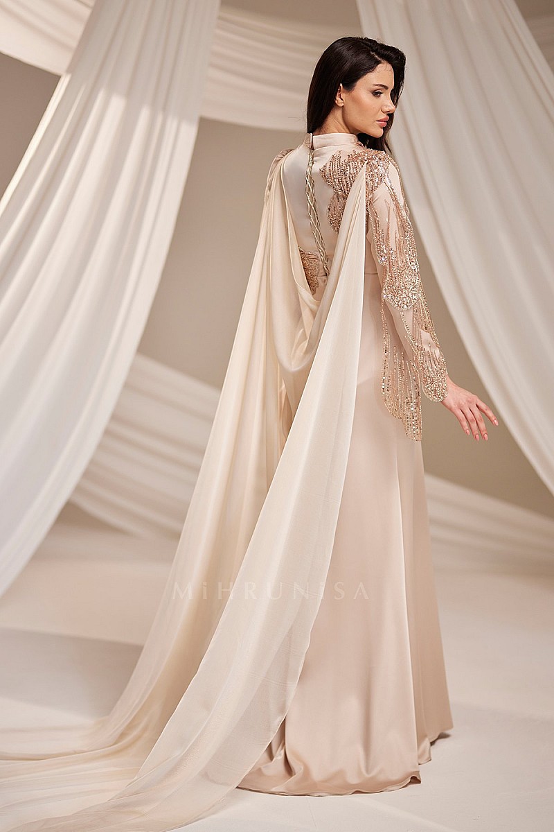 Omuz Aplikeli Şık Arva Abiye - Gold