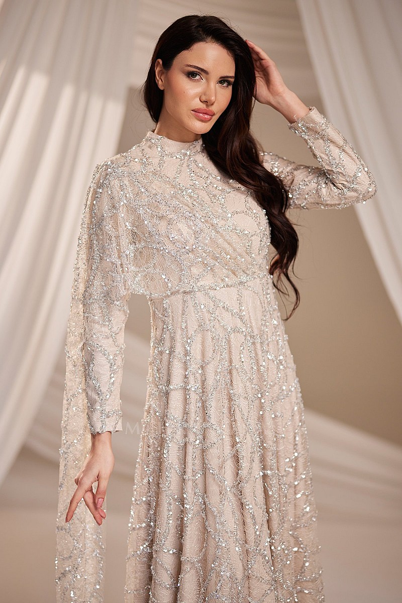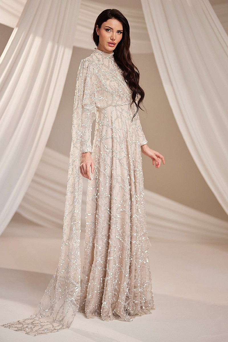 Pelerin Ve Drape Detay Alina Abiye - Taş