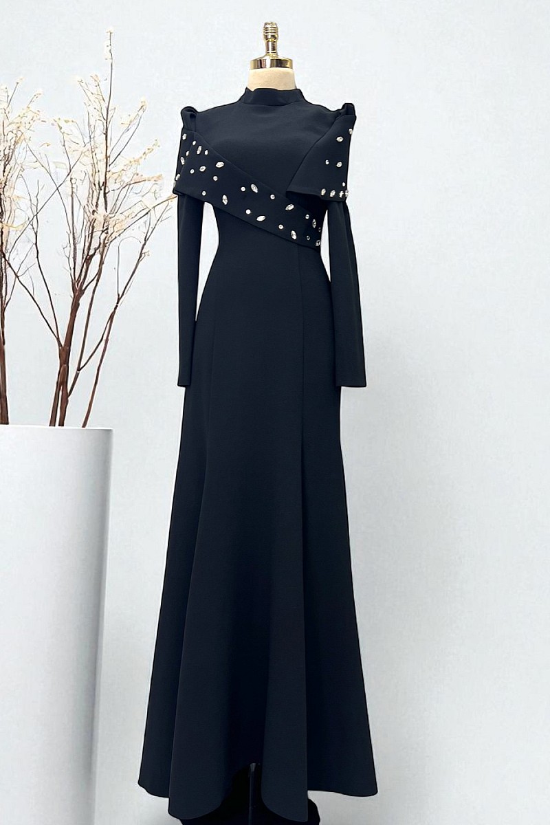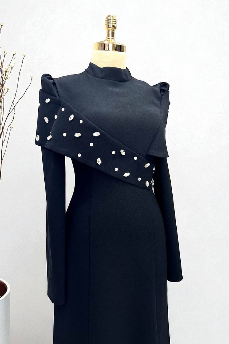 Taş Çakma Detaylı Bronte Abiye - Siyah
