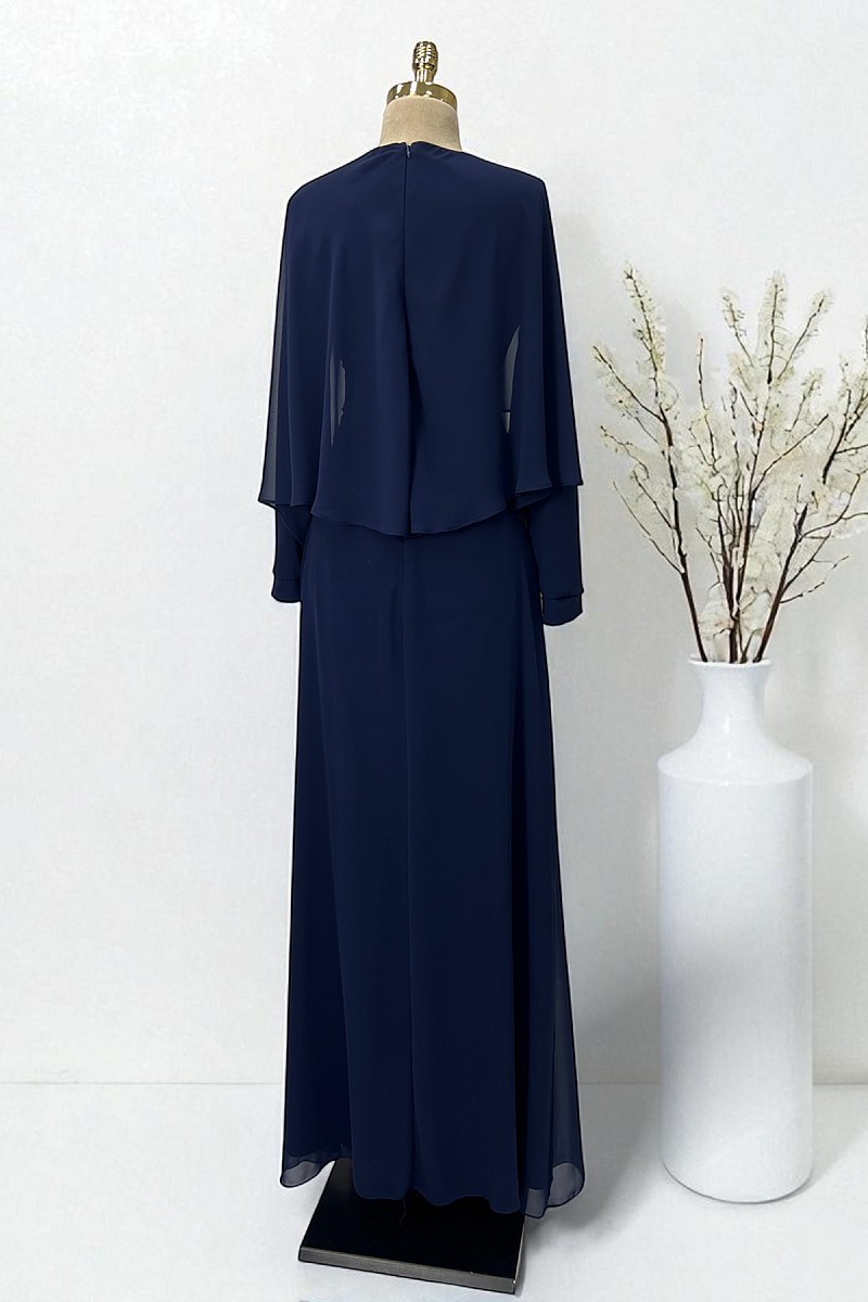 Pelerin Şifon Detay Anjeya Abiye - Lacivert