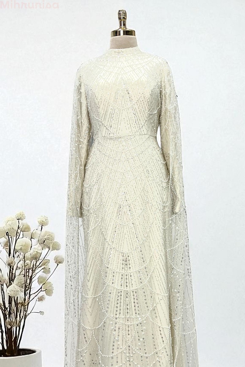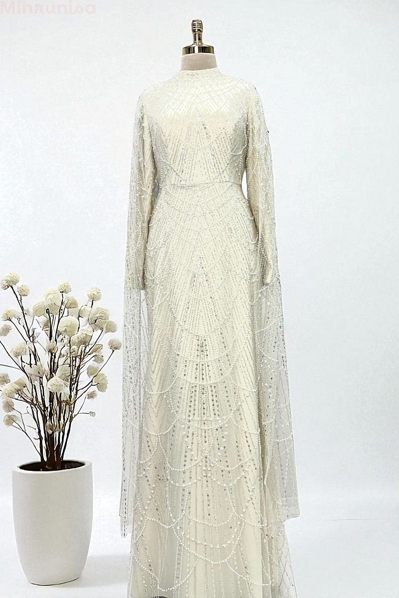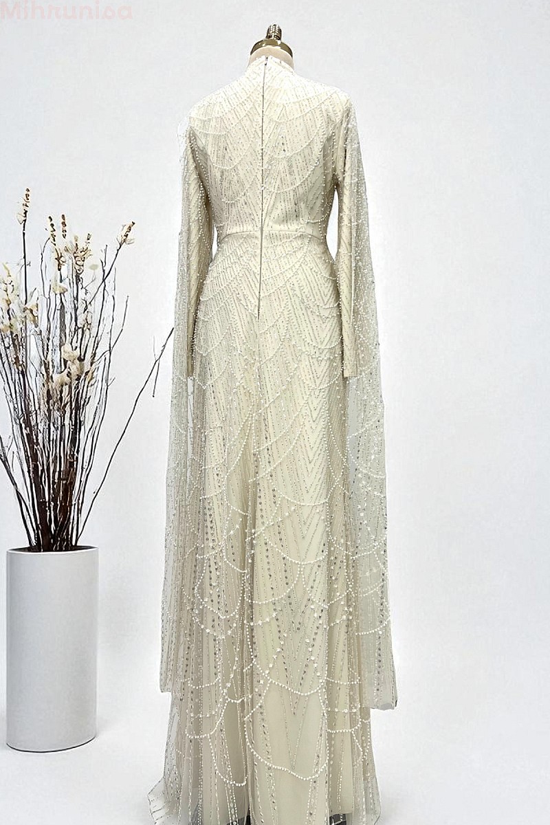 Tül Kola Peleri Detay Alima Abiye - Krem