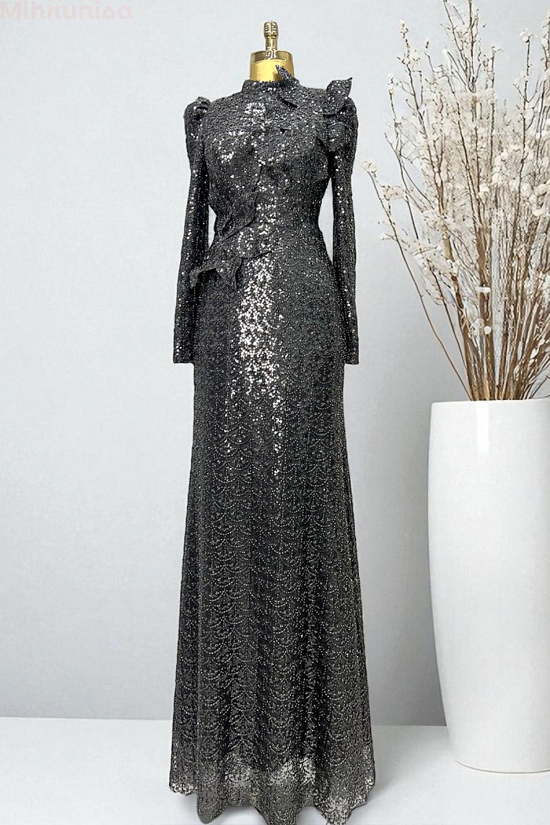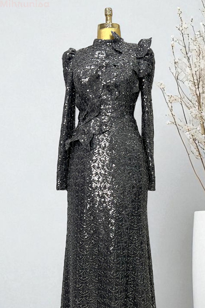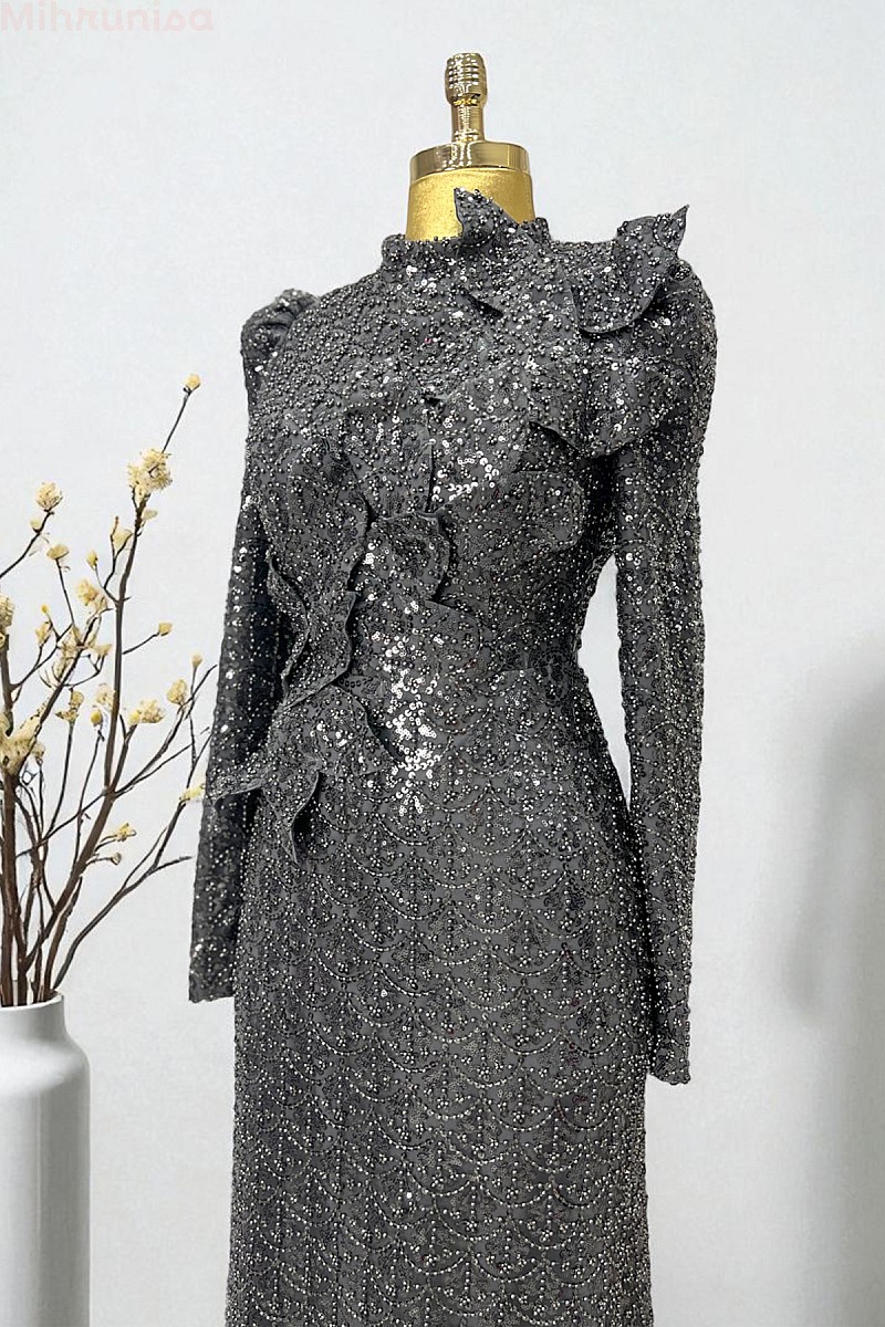 | ÜRÜN BİLGİSİ | Gösterişli volan süslemeleri ve tam boy ışıltılı dokusuyla özel günlerde etkileyici bir şıklık sunar. |